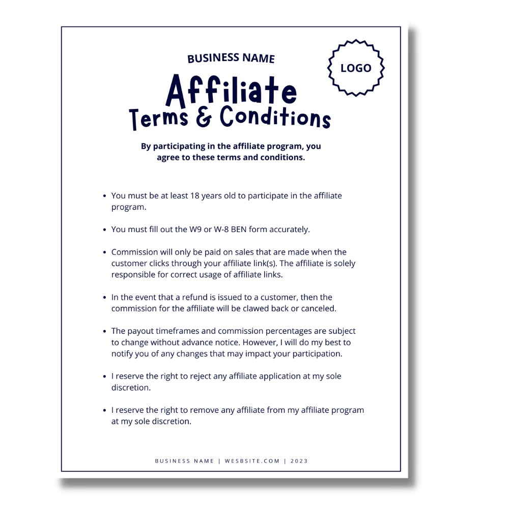 ![]() | a starter Affiliate Terms and Conditions document |